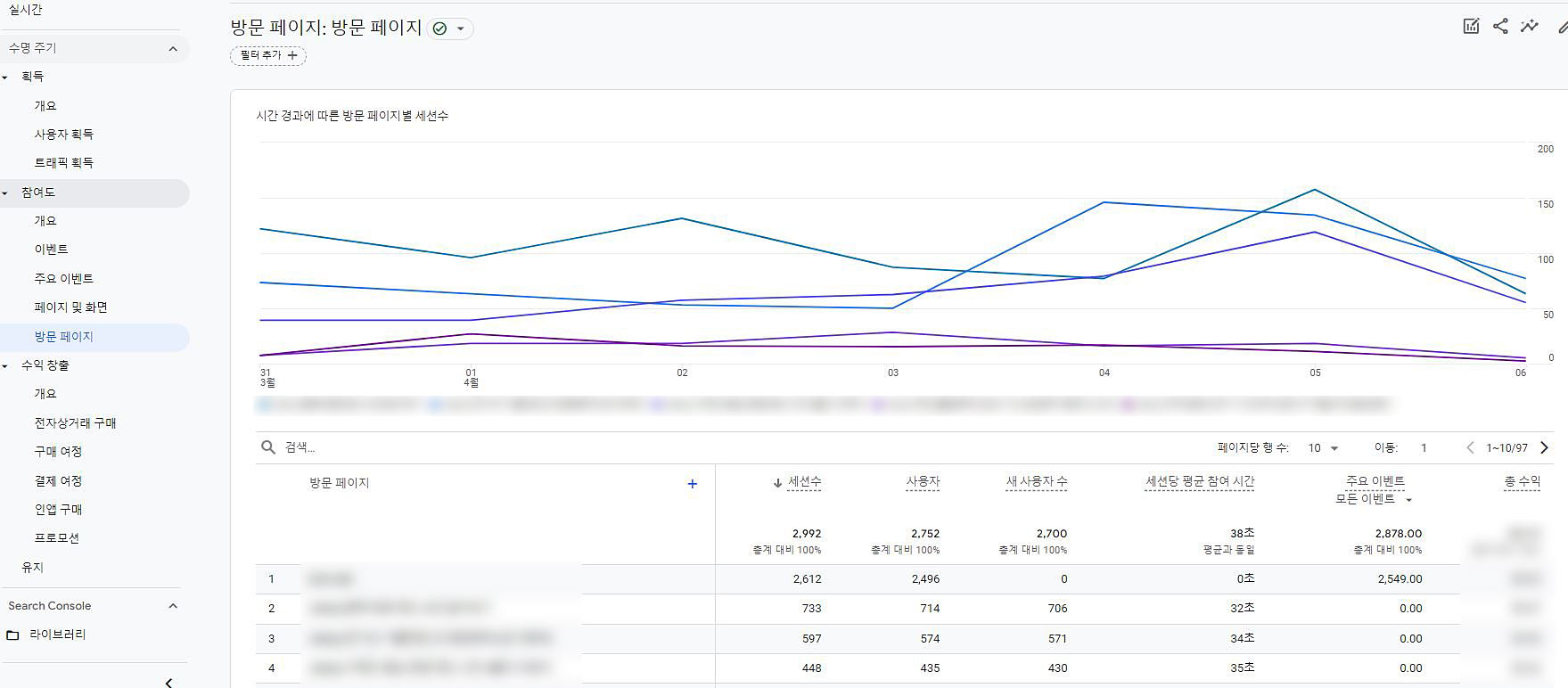 여기서는 조회수가 몇 번 있었는데, 실제 사용자수가 몇 명, 체류시간만 보는 페이지에요