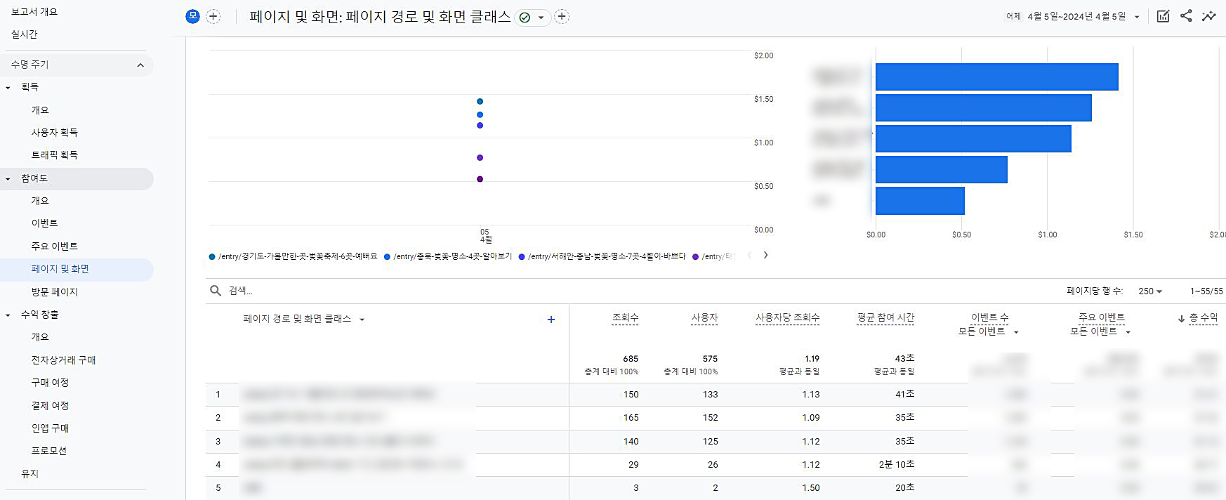 참여도 - 페이지 및 화면