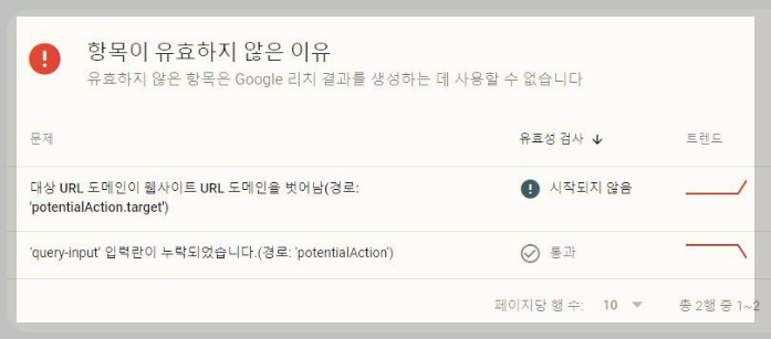 - 대상 URL 도메인이 웹사이트 URL 도메인을 벗어남(경로: 'potentialAction.target')