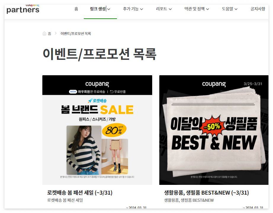 쿠팡파트너스에서 정기적으로 하는 이벤트를 보면