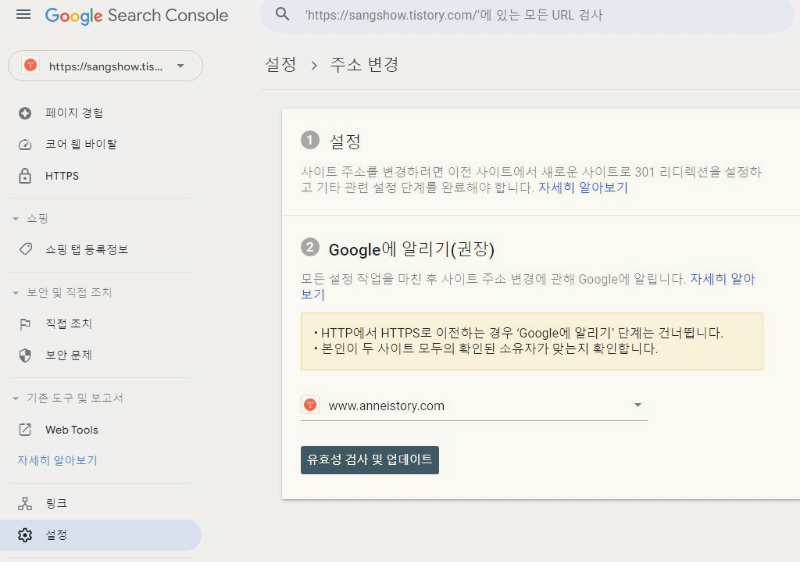 그리고 티스토리에서 주소 변경을 시도했는데요